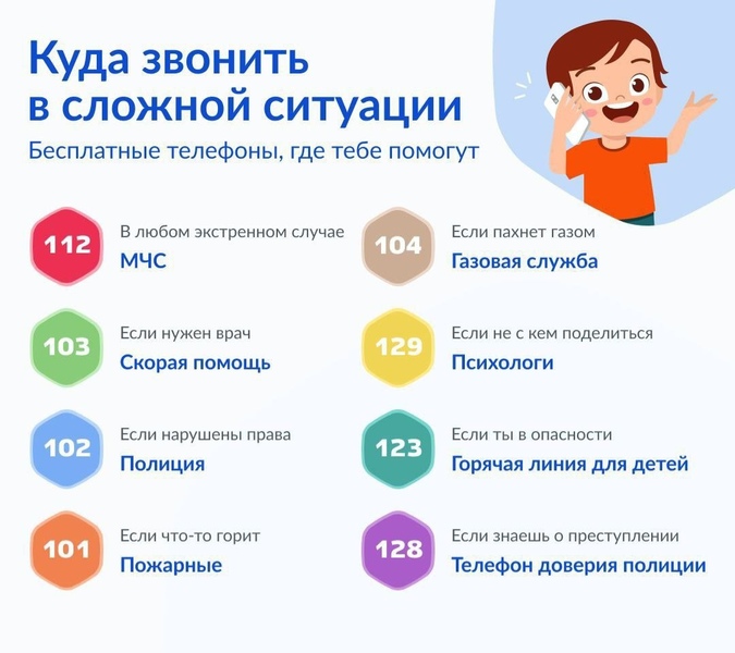 Куда звонить детям в сложных ситуациях, помимо родителей.